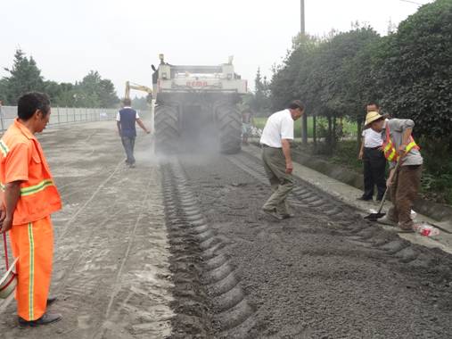 鄰近的沙西線也在做冷再生工程,由于是同一承包工程公司也中標(biāo)了其中一段路,這套冷再生機組被調(diào)去做了一段試驗段,兩天干了7560平方米,這個屬于正常的施工速度。相鄰標(biāo)段有一臺進口的WR2000,一天只能干1800-2000平方,無論是業(yè)主、施工管理方還有其它配套機械都對這個工作速度不滿意,甚至連撒水泥的民工意見都大得很,因為他們的工錢也是按平方結(jié)算的,想多干而不可得。項目部協(xié)調(diào)我們這臺WR2300L去打了一段,實際驗證速度確實更快。項目部這才確定不能盲目推崇進口機器,國產(chǎn)機器也是可能勝過進口機器的,很快,項目部與用戶簽定了合同,退掉WR2000,租用我們的機器,我們推薦的是比WR2300L速度更快的機械傳動RZ2300冷再生機。